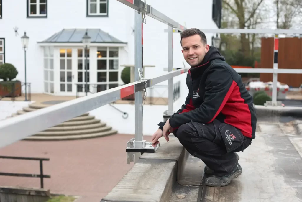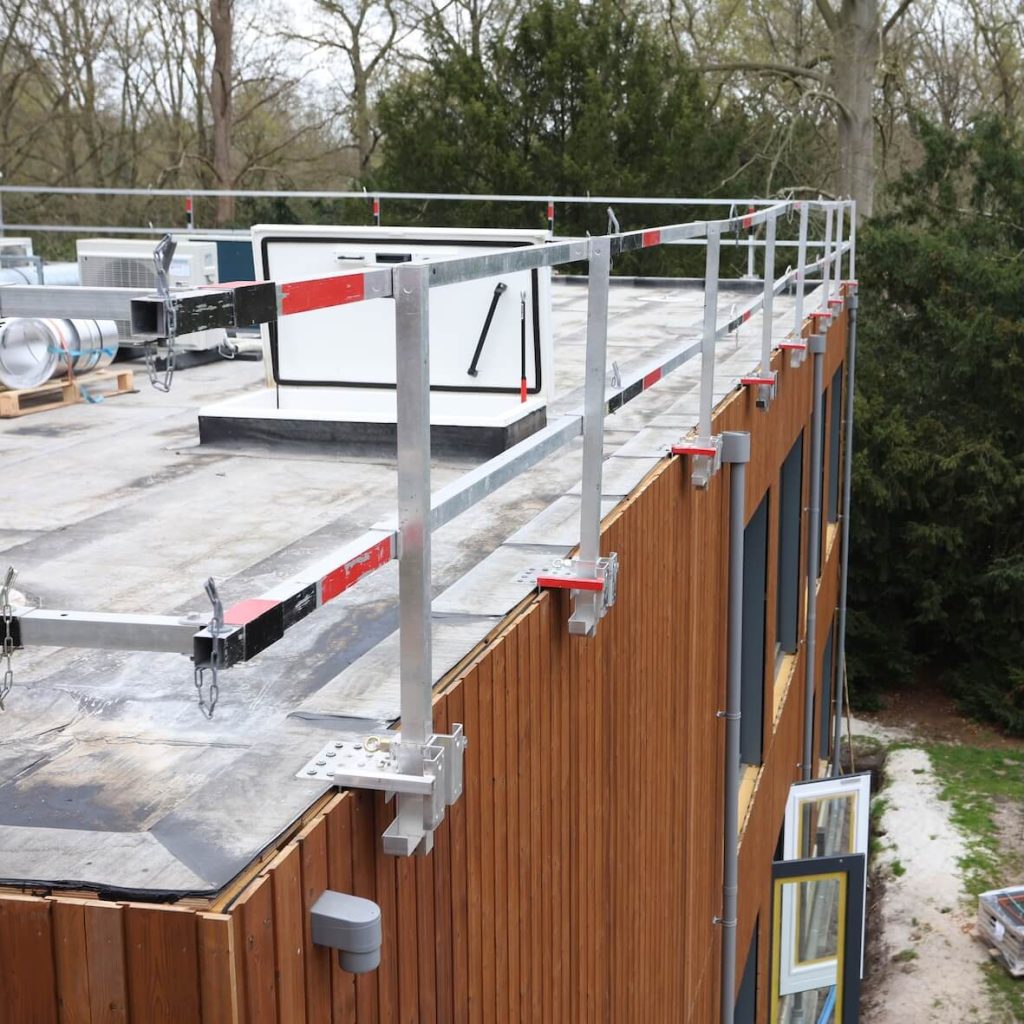 Opbouw van onze permanente dakrandbeveiliging op het gemeentehuis
